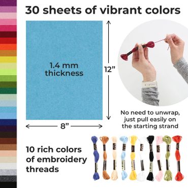 The felt was very soft and the colors are bright and beautiful! These are great for hand crafts and the sewing threads match up with the color of the felt. The felt is pretty thick and provides a cushy feel if using it to make purses or smartphone protective wrap. Overall this is a great purchase and I definitely recommend it!